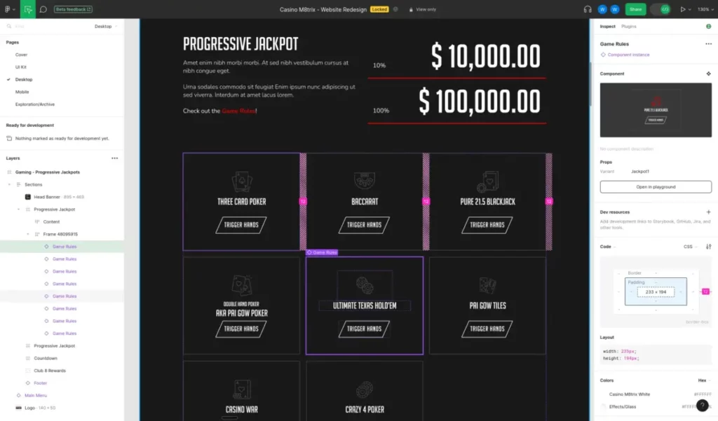 We took a two pronged approach to this project. The designer created Figma mockups that were then discussed with the client and developers to determine first the best way to present the data, and then refine the details until Casino M8trix was happy with both the appearance and the functionality.